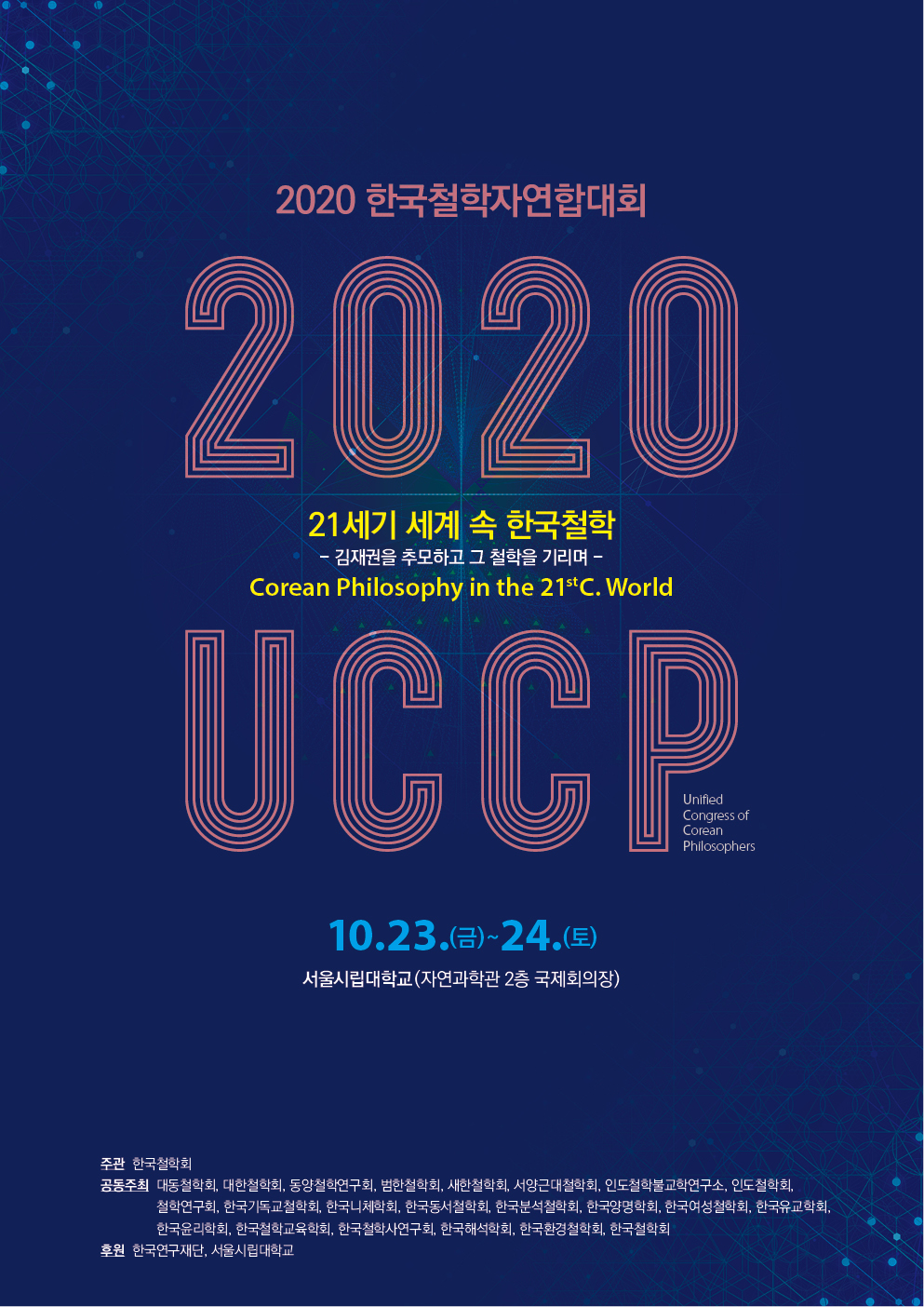 코로나 19라는 전대미문의 사태에도 불구하고 한국철학자 연합대회의 성공을 위해 적극 참여해 주신, 모든 발표자와 토론자분들 그리고 공동주최 학회의 모든 임원 및 관계자 분들의 노고에 다시 한번 머리 숙여 감사드리며, 10월 23-24일 양일 간 서울시립대학교에서 (온/오프라인 병행으로) 개최되는 연합 학술대회에 적극 참여해 주시길 당부드립니다. 감사합니다.